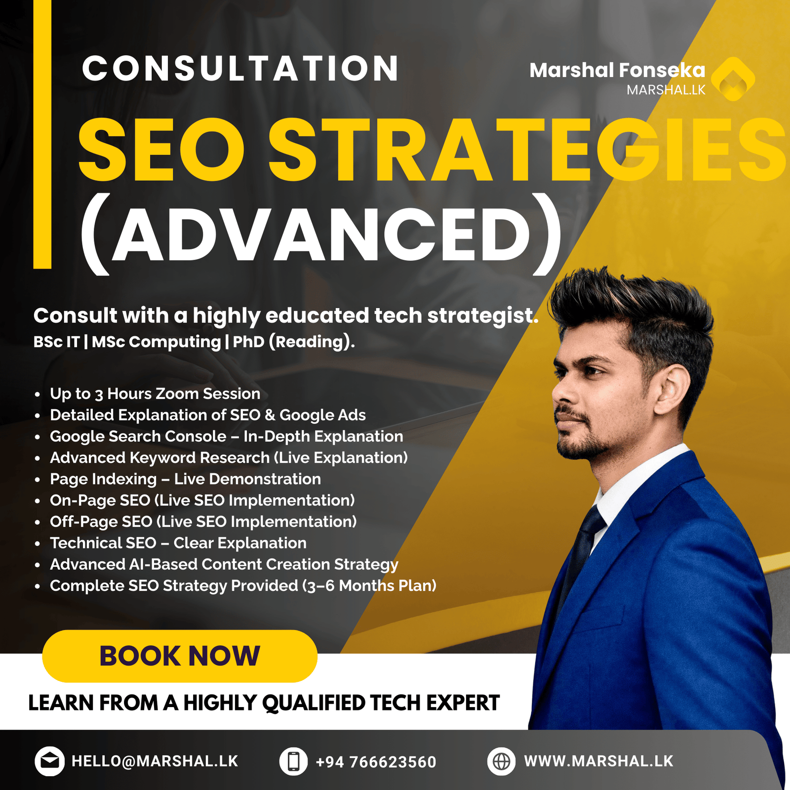 This advanced SEO consultation session is designed for businesses that want a deeper understanding of search engine optimization and a structured plan to improve their Google rankings.